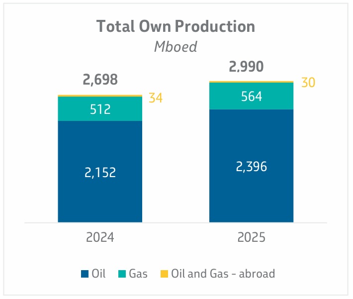 • Total own production: 2.99 million boed (previous record: 2.84 million boed in 2020)